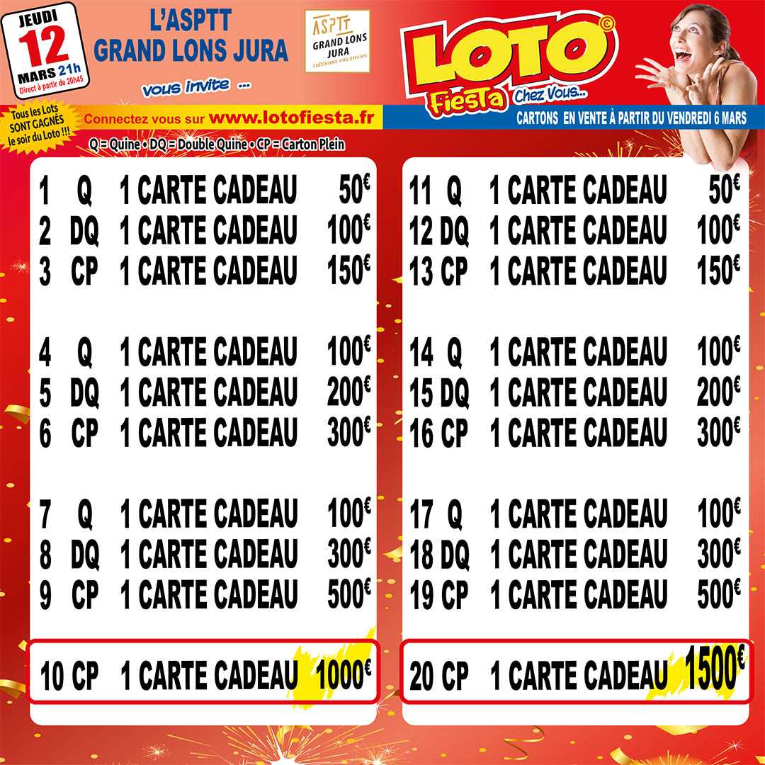 Veuillez envoyer un chèque à Nom de la boutique, rue, code postal, ville, pays. : ASPTT GRAND LONS JURA