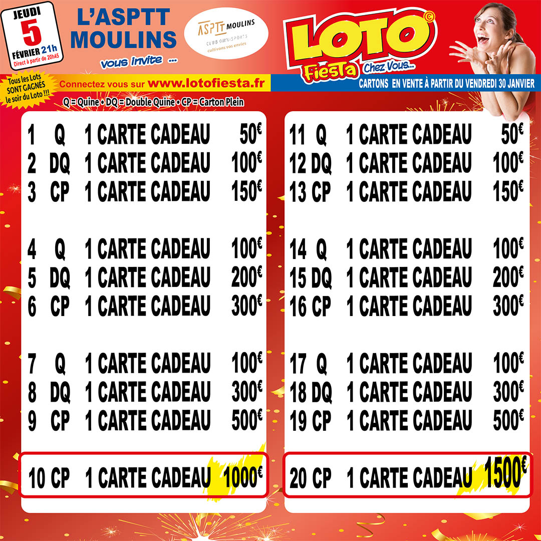 Veuillez envoyer un chèque à Nom de la boutique, rue, code postal, ville, pays. : ASPTT MOULINS