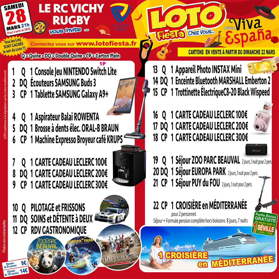 Veuillez envoyer un chèque à Nom de la boutique, rue, code postal, ville, pays. : RC VICHY RUGBY