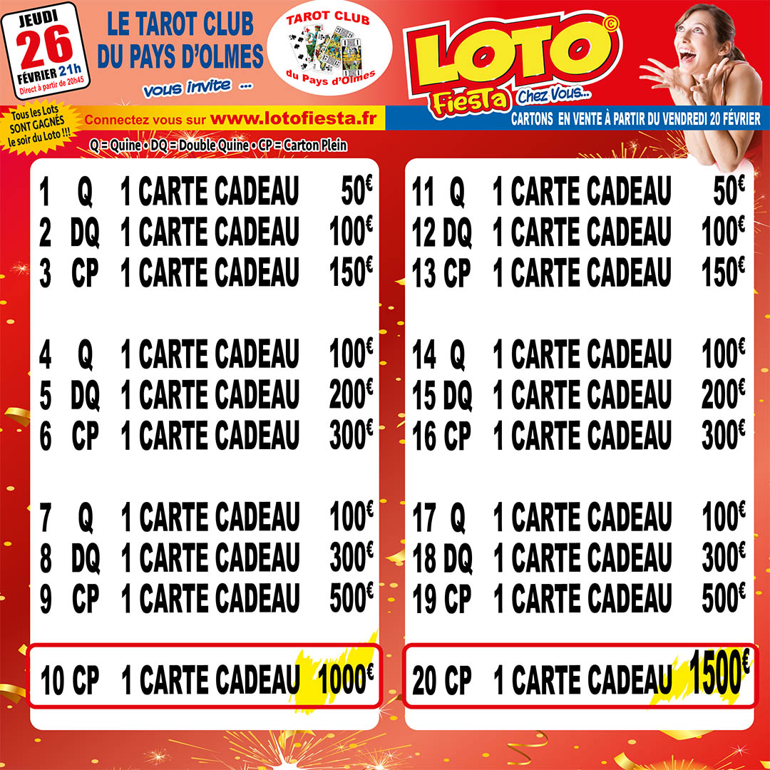 Veuillez envoyer un chèque à Nom de la boutique, rue, code postal, ville, pays. : TAROT CLUB DU PAYS D OLMES